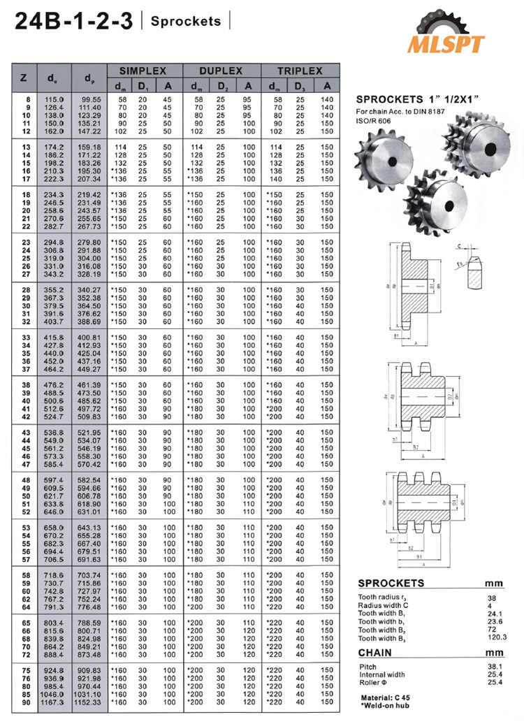 SPROCKETS 1” 1/2X1”